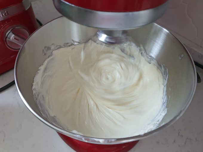Scoatem forma de tort cu blatul de la frigider si turnam crema