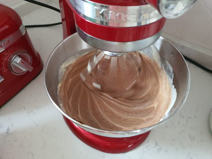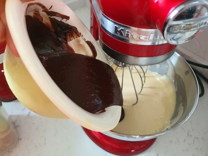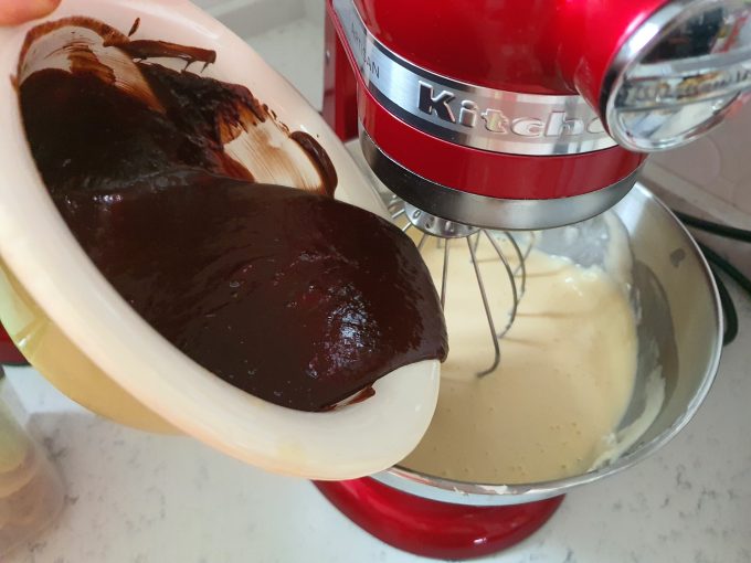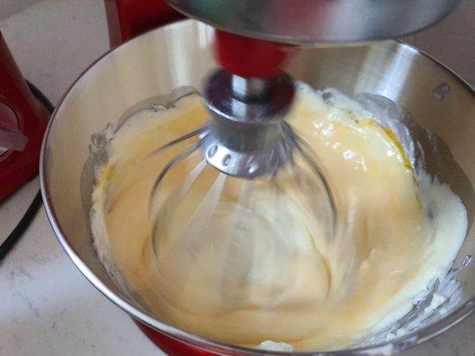 Adaugam ouale, unul câte unul, pe rand și mixam continuu la viteza mica (adaugam urmatorul ou, doar când este incorporat cel adaugat anterior)