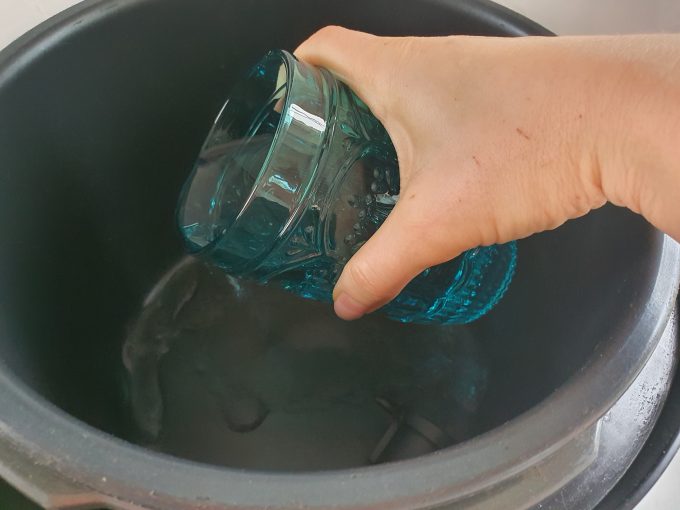 In vasul Crock-Potului punem 300 ml de apa, apoi adaugam gratarul (accesoriul pentru funcția de steam)