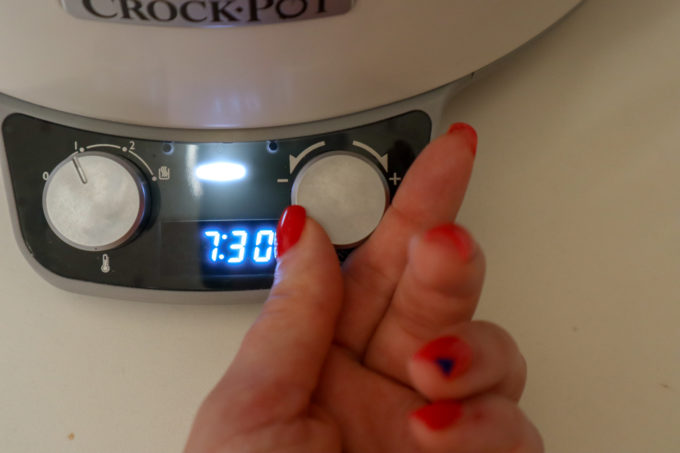 - Punem capacul, setam treapta 1 (low) de intensitate si 7ore 30 de minute ca timp