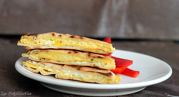 - mai intoarcem o data quesadiila deja formata si o mai rumenim putin
