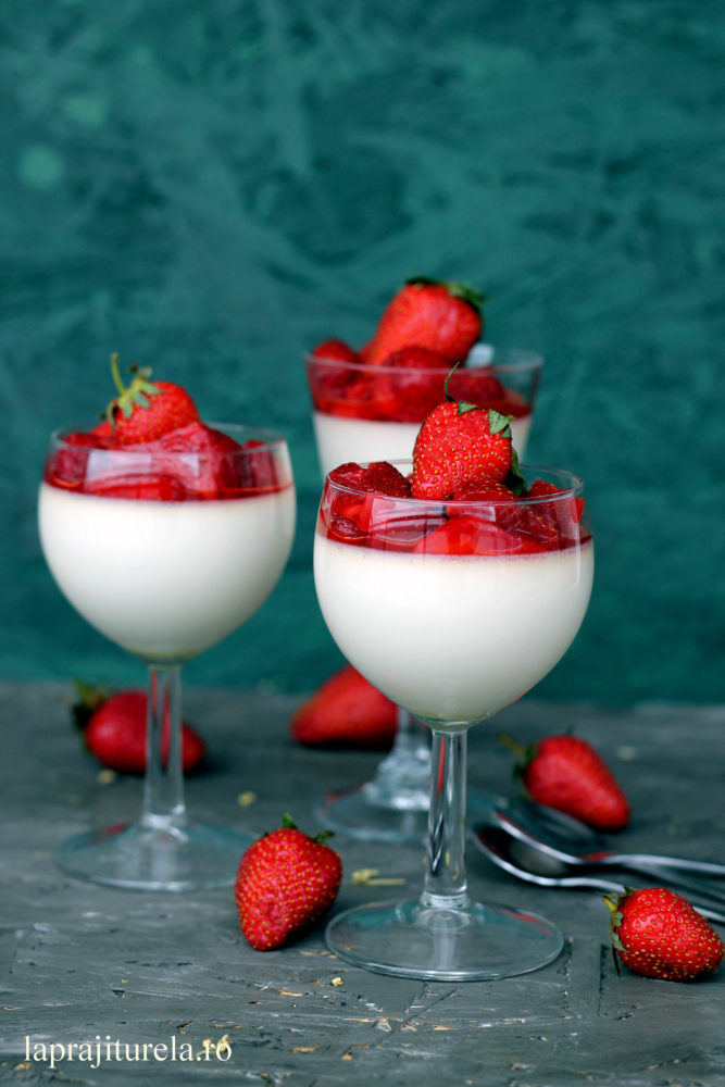- La servire punem cate 1-2 linguri de capsuni macerate in fiecare pahar in parte.