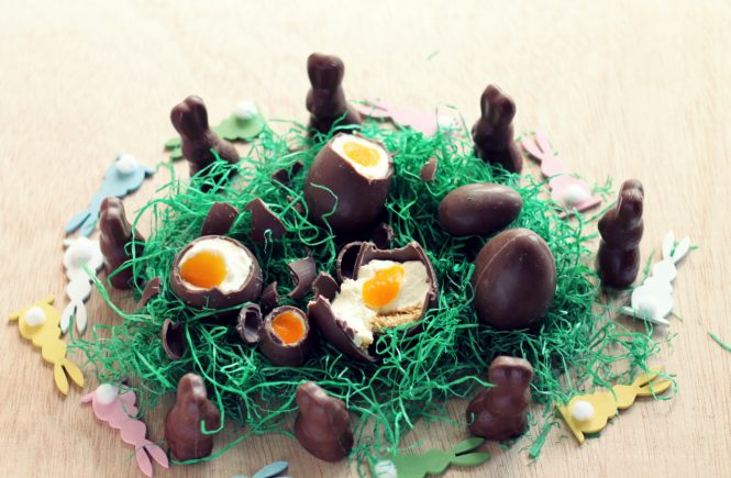 Am vazut pe internet, o poza cu niste oua de ciocolata care aratau in interior exact ca niste oua normale. Mi s-a parut atat de interesanta ideea incat am zis ca neaparat trbuie sa fac si eu. Inca de cand nu stiam cum se fac aveam deja acest „desen animat” in minte. Asa ca am facut cercetari si am descoperit ca in interior poti pune branza care sa arate ca albusul fiert si pe post de galbenus aprope orice ii seamana la culoare (gemuri sau fructe). Ouale pe carele-am facut eu au interior exact de cheesecake la rece, adica biscuite cu unt, crema de branza cu zahar si frsica lichida, iar galbenusul este de fapt o bucatica de piersica din compot. De mentionat este faptul ca nu am reusit sa il fac surpriza integala, adica i-am facut capacel si pe acolo am pus compozitia. Deci oul este deja crapat cand, […]