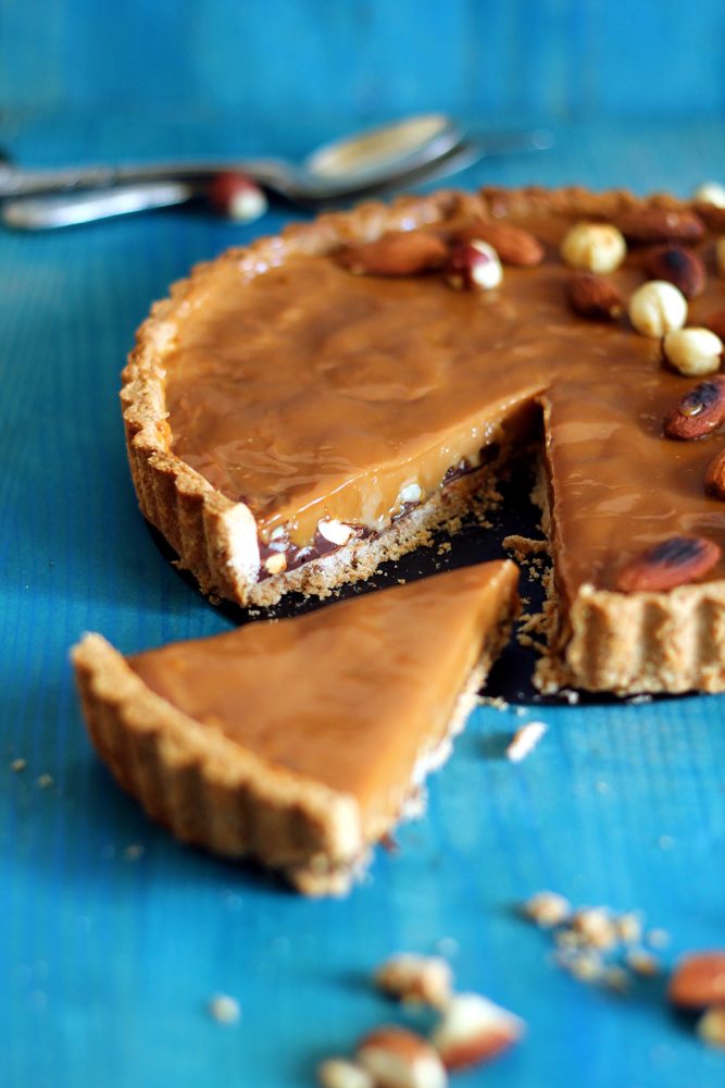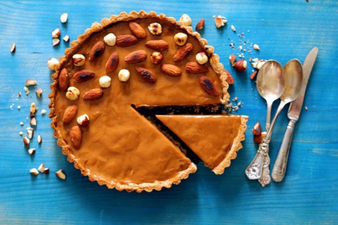 Vi se intampla sa faceti un preparat pornind de la un singur ingredient?! Sunt sigura ca da! E la fel ca la tinute: ai o piesa vestimentara si pornesti de la ea pentru a-ti crea intreaga tinuta. La fel s-a intamplat si cu aceasta tarta super-uber delicioasa. Primisem de la prietena mea Anda de la Selenar Desing o cutie de lapte condensat fiert, adica deja caramelizat, adica dulceata de lapte – dulce de leche.