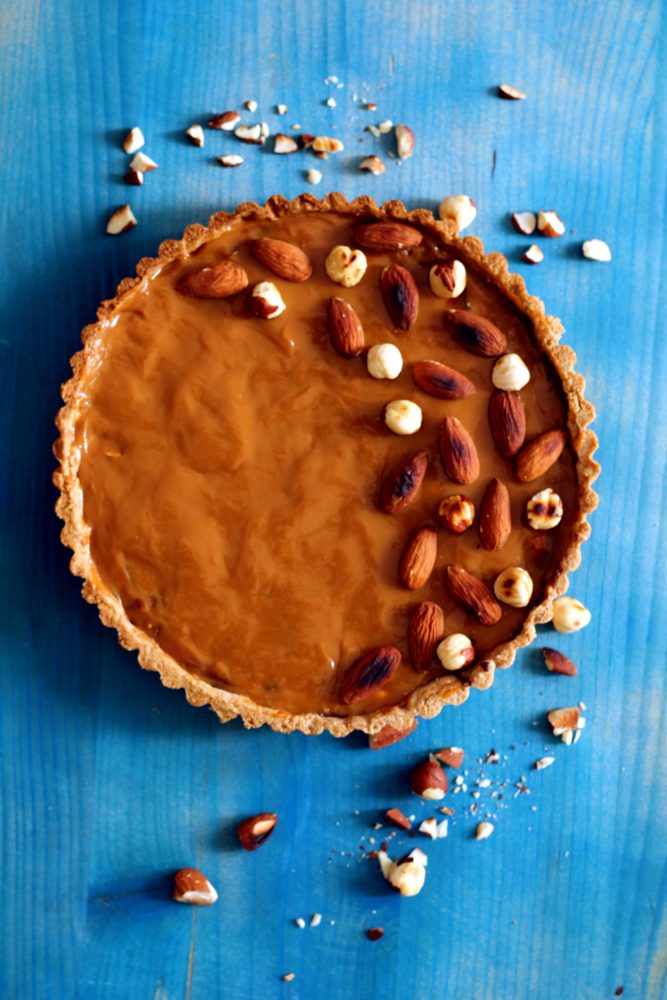 Tarta cu ciocolata, dulce de leche migdale si alune de padure