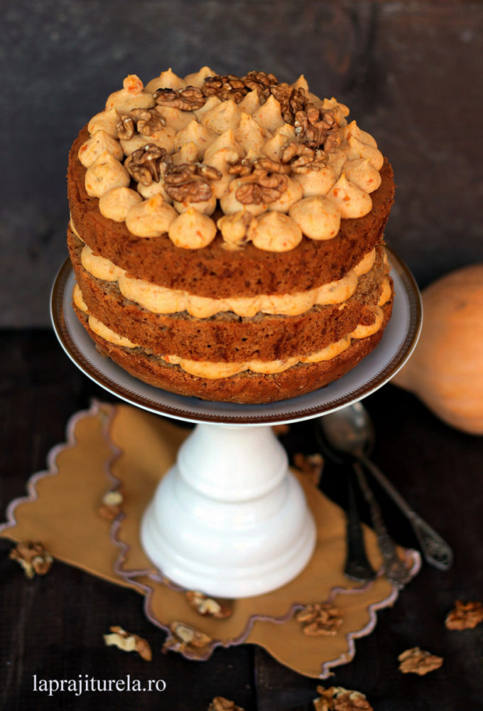 Tortul din imagine este o adevarata revelatie, pe care am descoperit-o datorita voua, cititorilor mei. Marti am facut un poll pe pagina de Facebook in care va intrebam ce ingredient vreti sa fie vedeta in live-ul din ziua respectiva. Marul si dovleacul aveau sa fie, credeam eu, in concurenta. Da’ de unde?! Dovleacul a castigat detasat. Recunosc, pe mine m-a luat prin surpindere faptul ca majoritate a votat dovleacul. Asta poate pentru ca la mine acasa aceasta minunatie a naturii a fost mult subestimata. Tot ce mancam de la dovleci erau samburii. 🙂