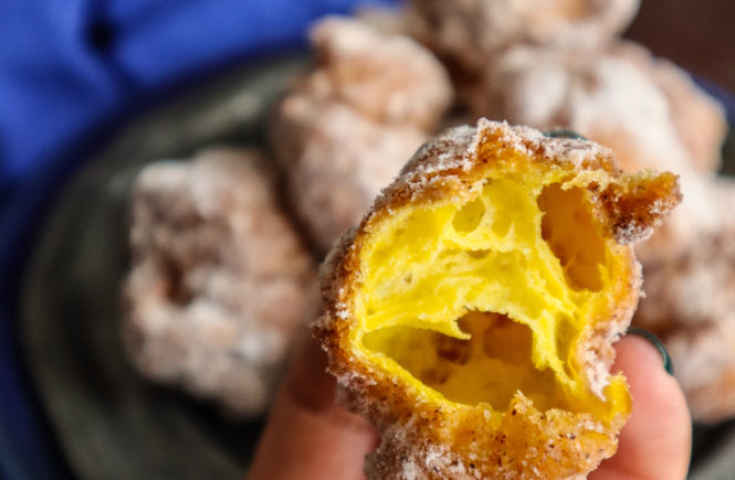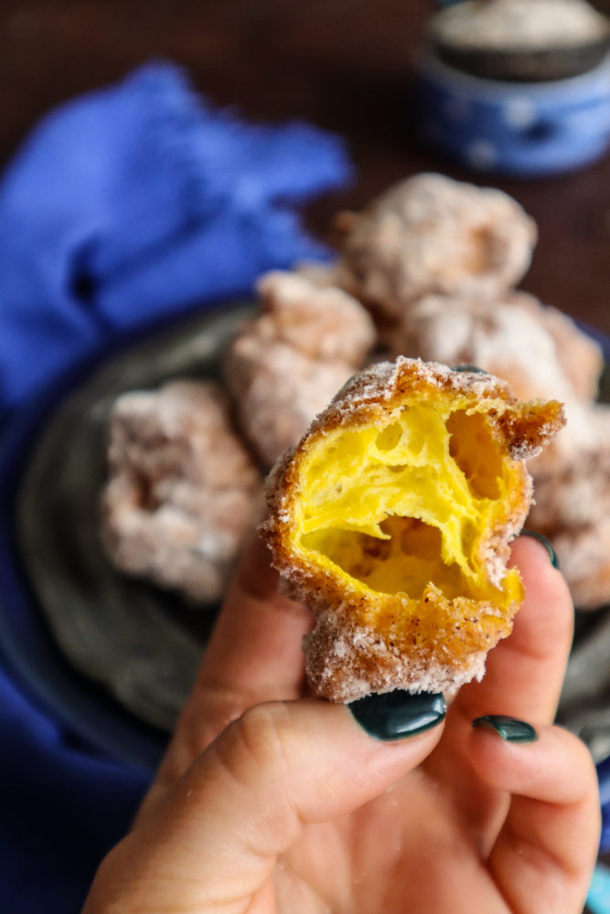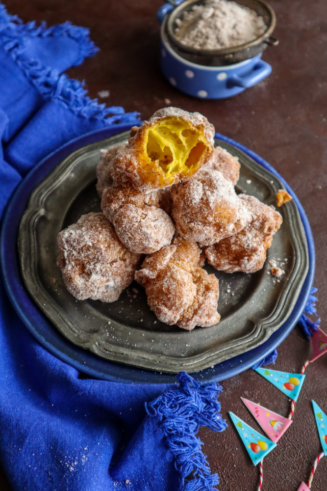 Aceste gogosi au cateva mici detalii de care este nevoie sa tinem cont pentru a iesi excelente. Primul: dupa ce facem aluatul, ouale trebuie adaugate, obligatoriu, pe rand. Doar asa gogosile vor creste si vor devei pufoase. Al doilea: focul. Daca avem un termometru de bucatarie putem sa il punem in uleiul incins si sa il mentinem la 160 grade. Daca nu avem termometru, incercam sa mentinem focul mediu, in niciun caz puternic – daca uleiul se incinge prea tare, gogosile se vor arde la exterior si vor ramane crude in interior.